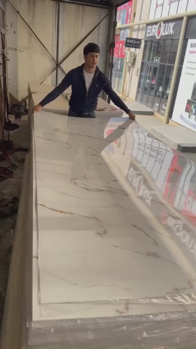 - Güçlü mermer etkisi: Merkezden yayılan kalın gri damarlarla prestijli görünüm.