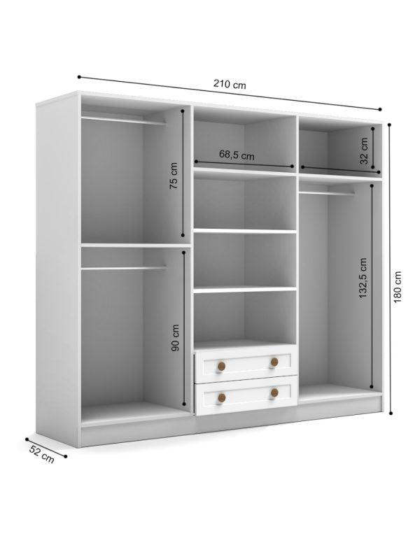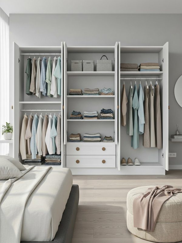 Geniş raf ve askı alanları sayesinde kıyafetlerden aksesuarlara kadar her şey için pratik bir depolama çözümü sunar.