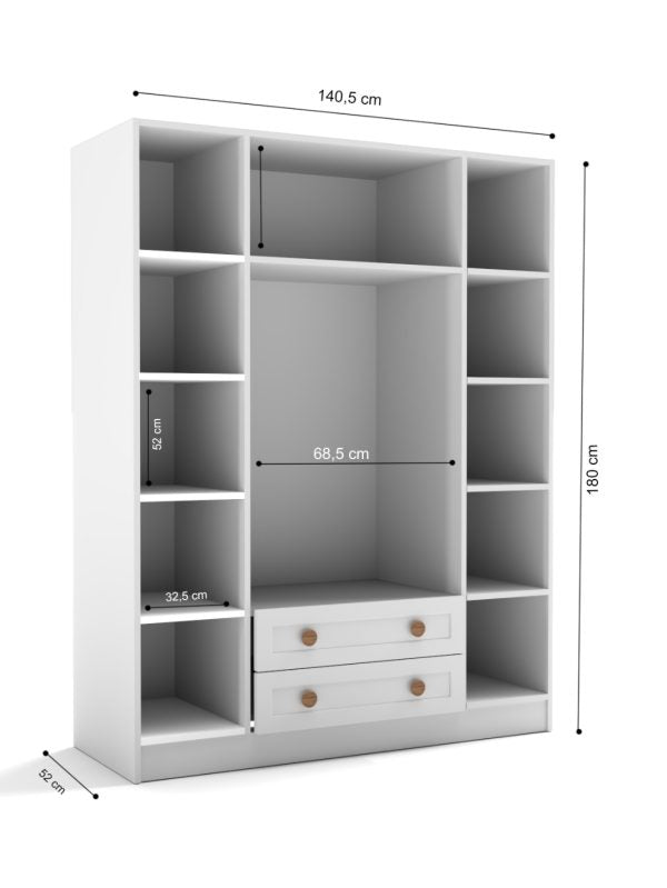 140 cm genişliği, çocuk kıyafetleri, montlar ve günlük eşyalar için rahat bir iç hacim sunar; 52 cm derinliği ise dar alanlarda bile kolay konumlanmasına yardımcı olur. Kapaklı yapısı sayesinde eşyalar tozdan korunur ve oda daha derli toplu görünür.