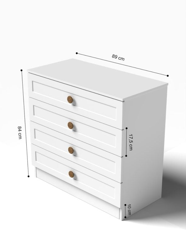 Dört adet geniş çekmecesi, kişisel eşyalarınızı düzenli ve erişilebilir şekilde saklamanıza imkân tanır.