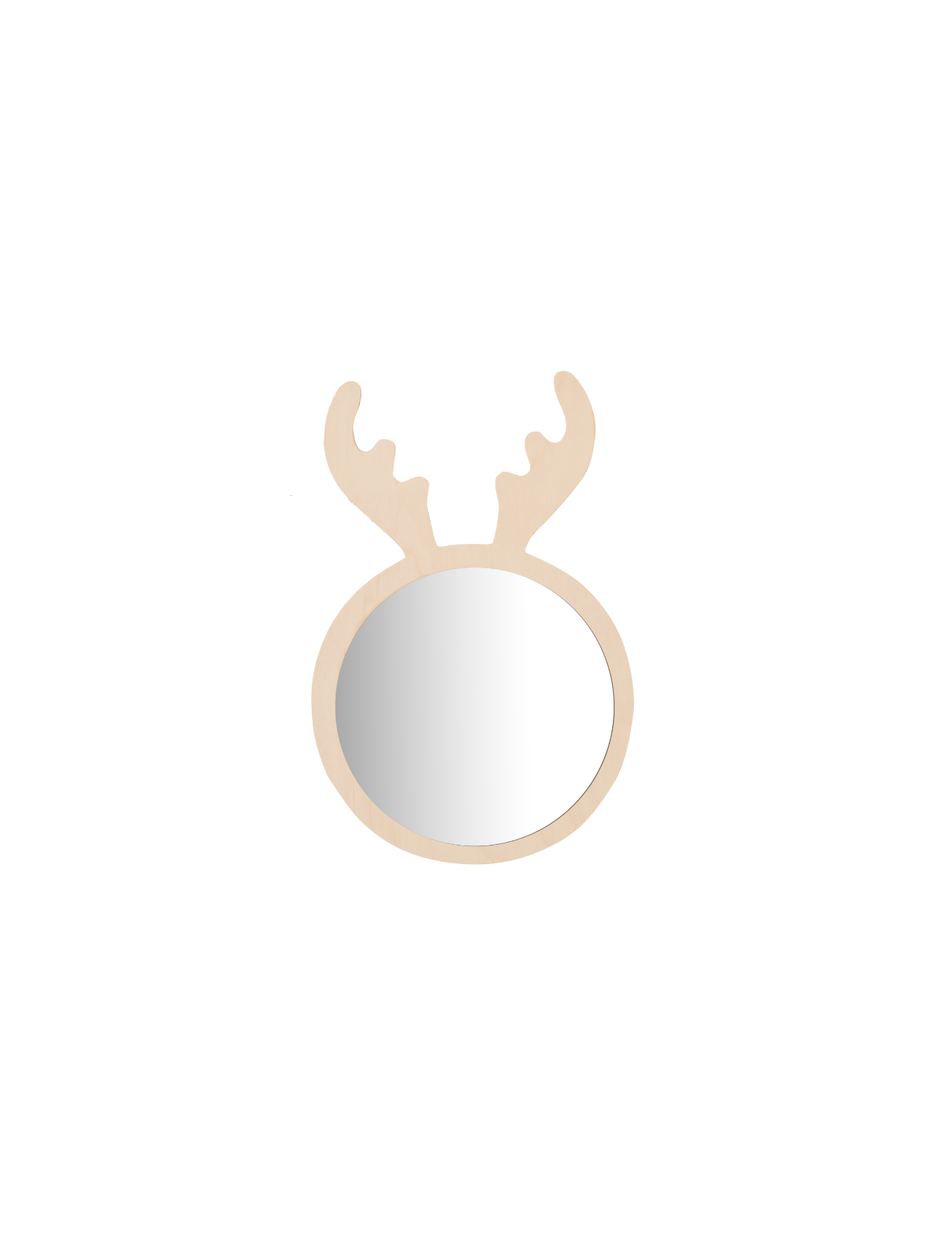 Geyik ayna, doğal huş kontraplak çerçevesi ve sade formuyla çocuk odalarına yumuşak bir karakter katar.