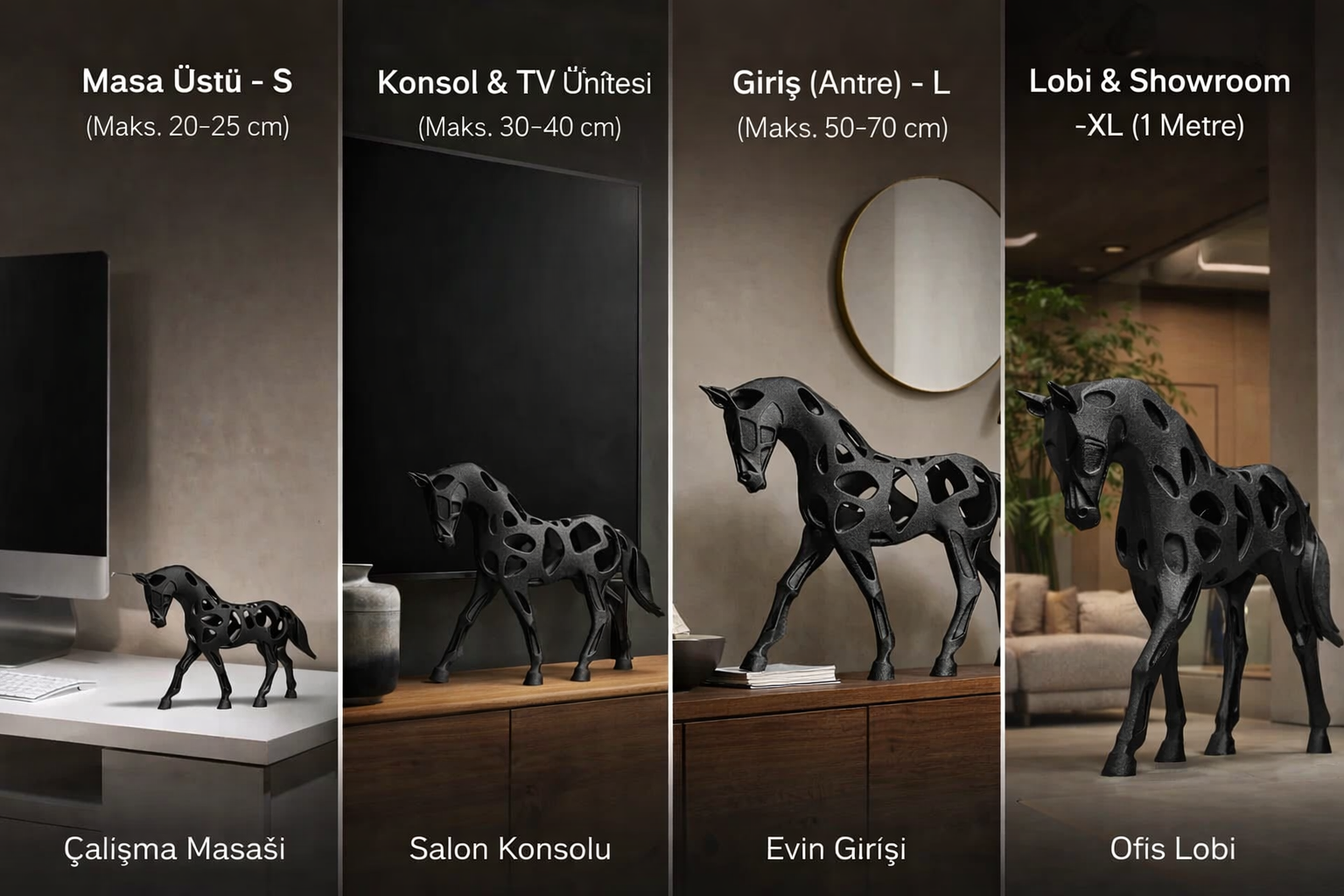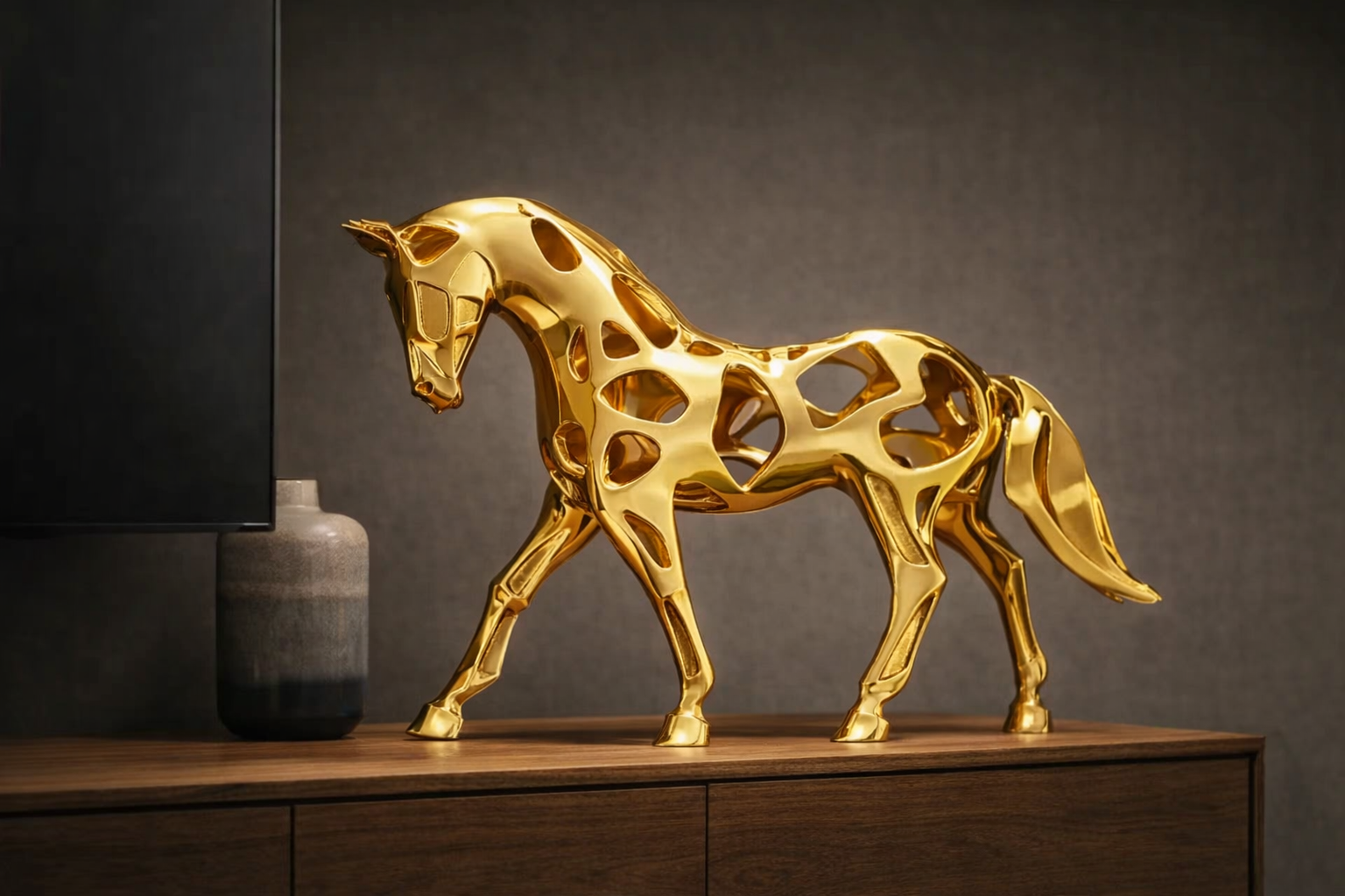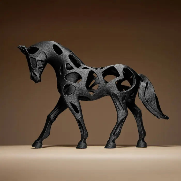 Klasik at figürünü unut—bu parça tam anlamıyla modern bir sanat objesi. Gövdesindeki “boşluklu” tasarım sayesinde ışığı yakaladıkça bambaşka bir karaktere bürünür; gündüz heykel, akşam gölge oyunu gibi… Minimal, güçlü ve çok havalı.