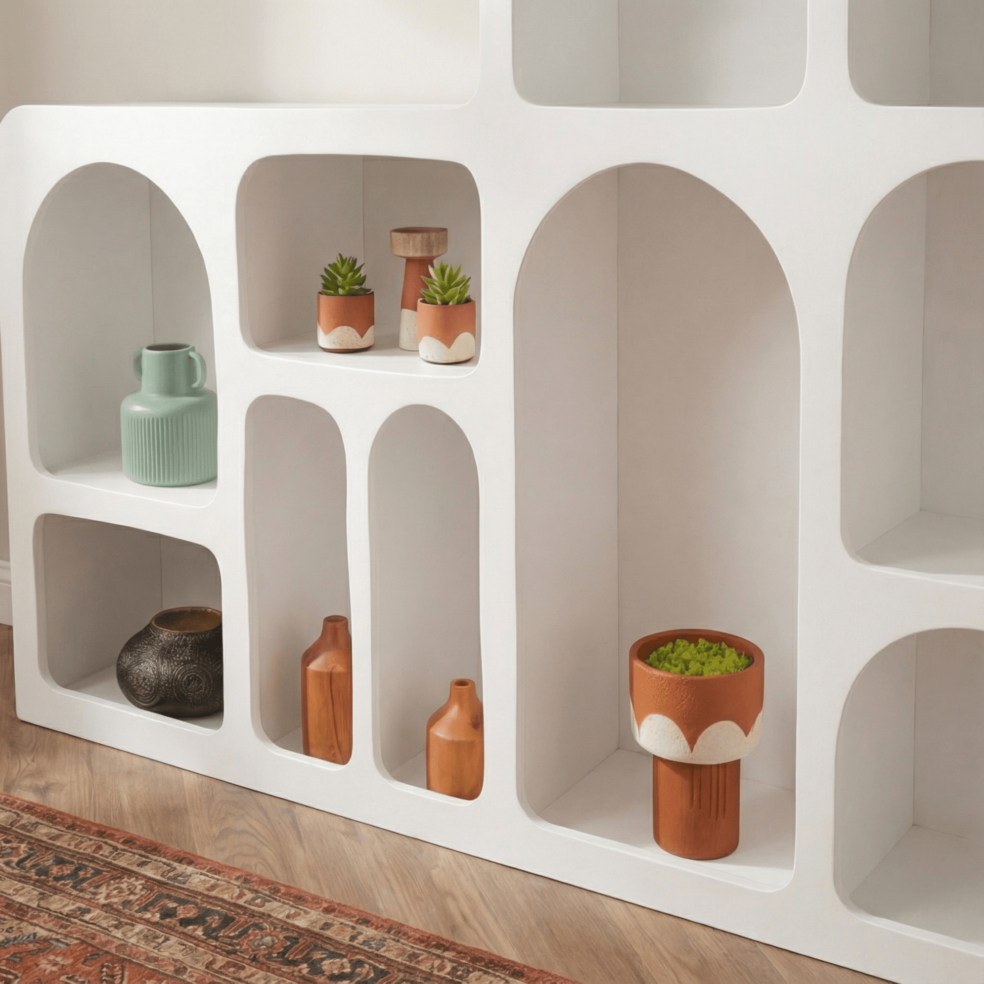 Açık ve kapalı alanların dengeli kurgusu, hem sergileme hem saklama ihtiyacını aynı anda karşılar. Günlük kullanımda sık tercih edilen eşyalar için erişilebilir raflar sunarken, kapaklı bölümleriyle düzenli ve toplu bir görünüm sağlar.
