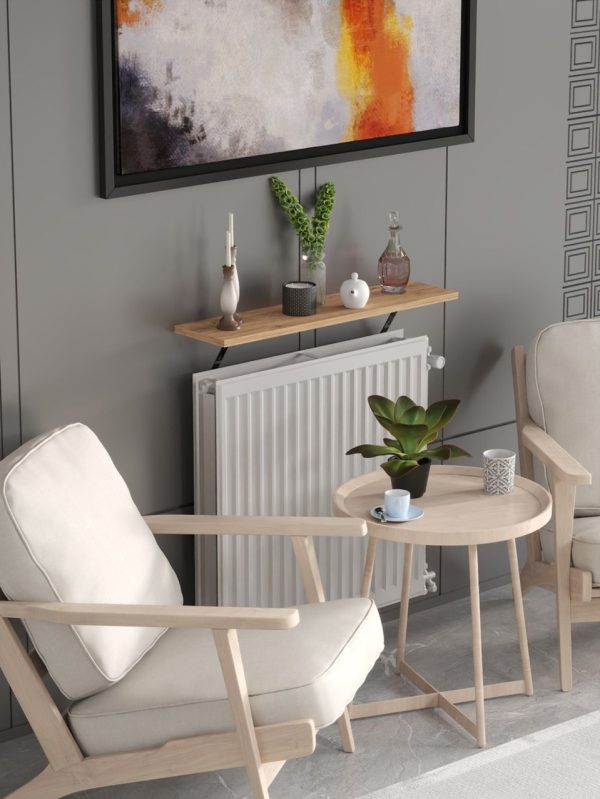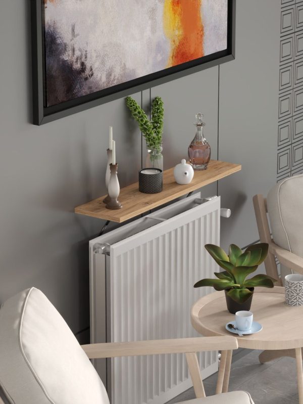 Modern ve yalın tasarımıyla petek üstü uçan raf, mekânda hafiflik hissi yaratırken duvar yüzeyini fonksiyonel bir şekilde değerlendirir.