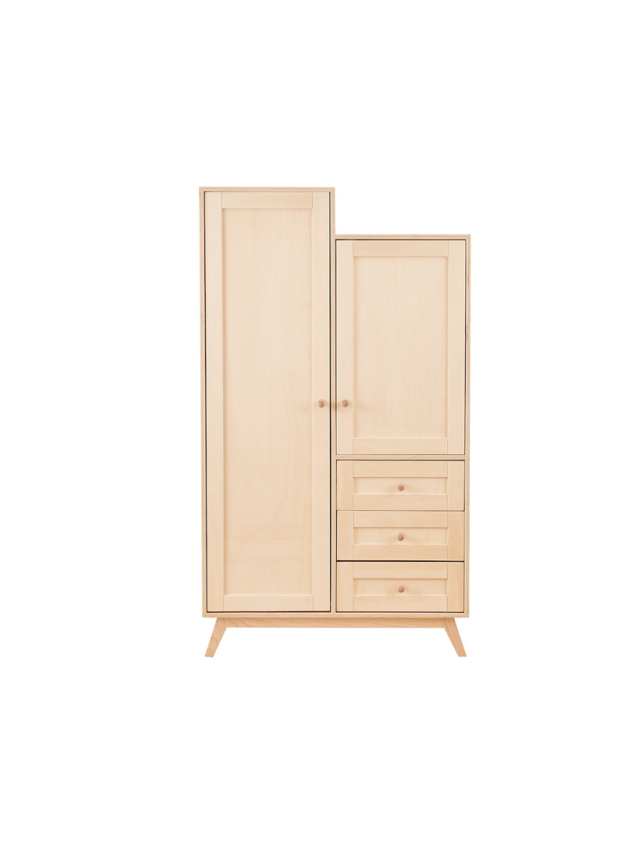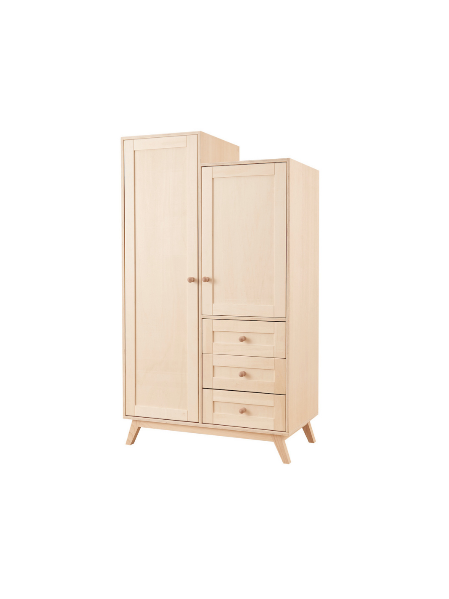 Retro Giysi Dolabı, doğal malzeme kullanımı ve sade tasarımıyla çocukluk döneminden sonra da kullanılabilecek zamansız bir depolama çözümüdür.
